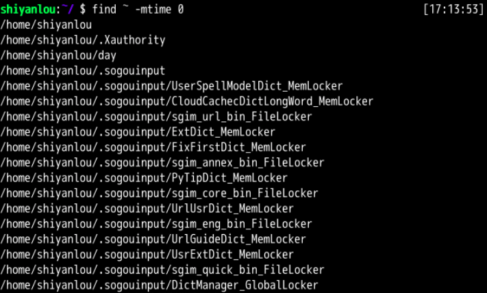 1 | find ~ -mtime 0 |