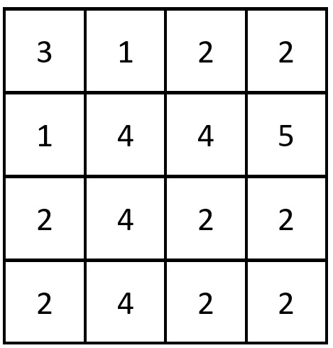 输入:grid = [[3,1,2,2],[1,4,4,5],[2,4,2,2],[2,4,2,2]]
