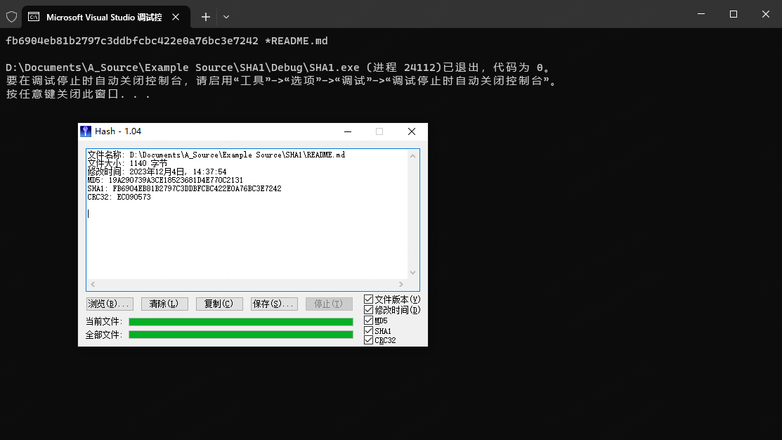 以下是计算结果,与 Hash.exe 计算结果一直。