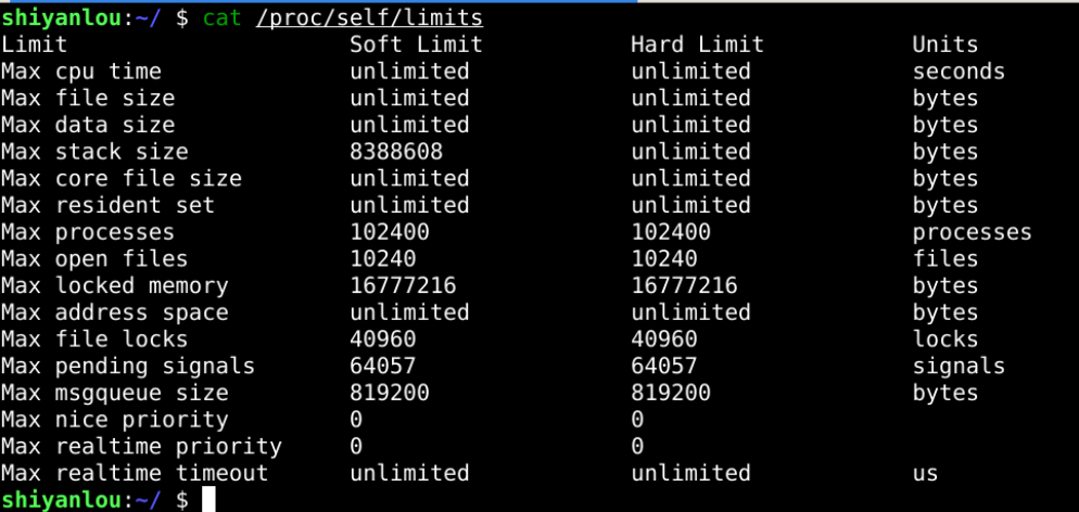 1 | cat /proc/self/limits |