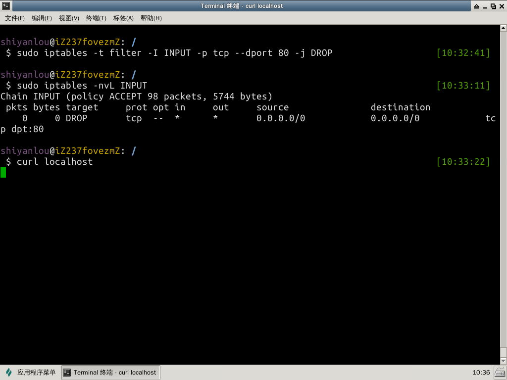 我们可以做这么一个例子,将所有访问我们 80 端口的数据包全部丢掉