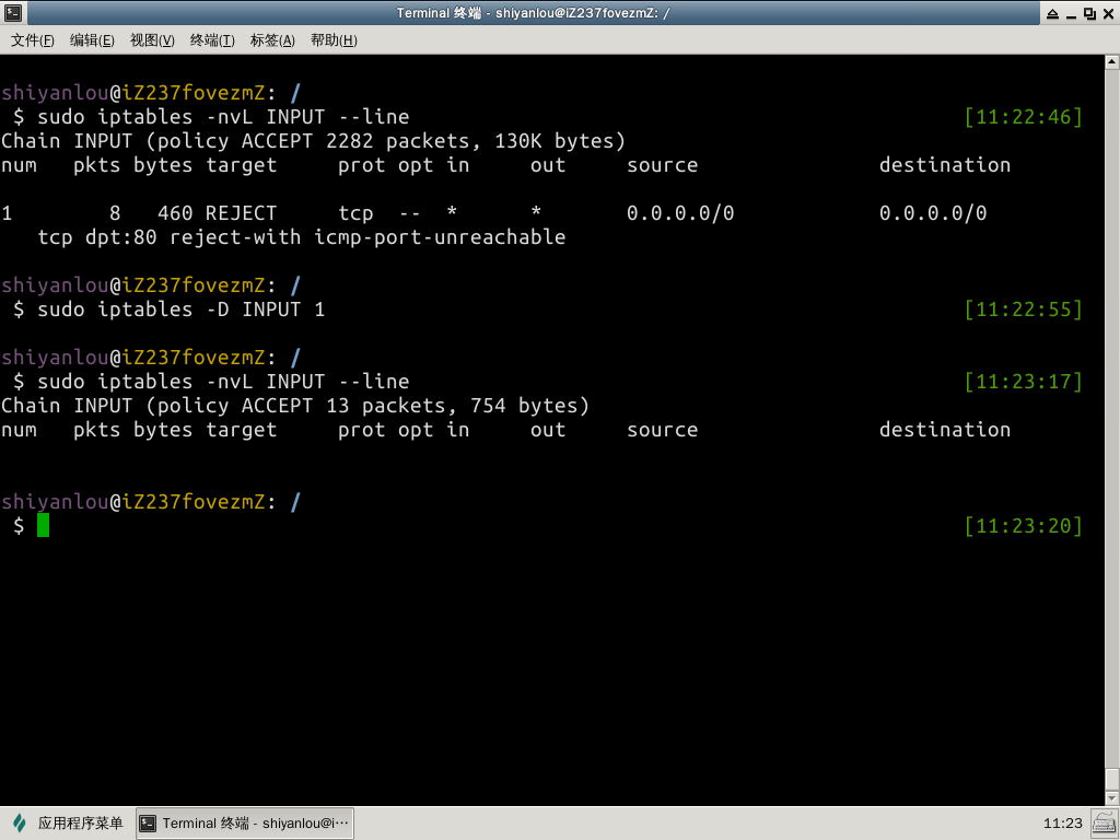 如上文中我们删除一条规则的时候使用的是 -D 后面加具体的规则,其实我们还可以这样去删