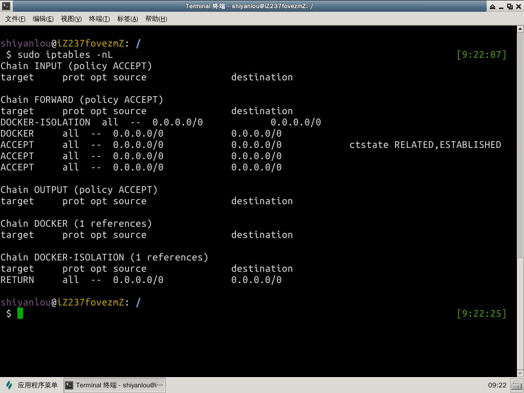 首先我们可以使用这样的一个命令来查看当前 iptables 中已经写下的规则