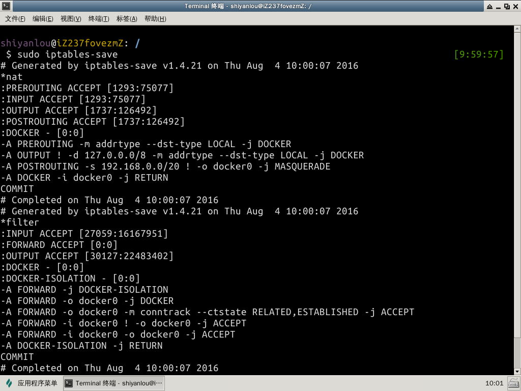 当然 iptables-save 有一个参数 -t 可以指定我们要保存的表,到某个文件中去
