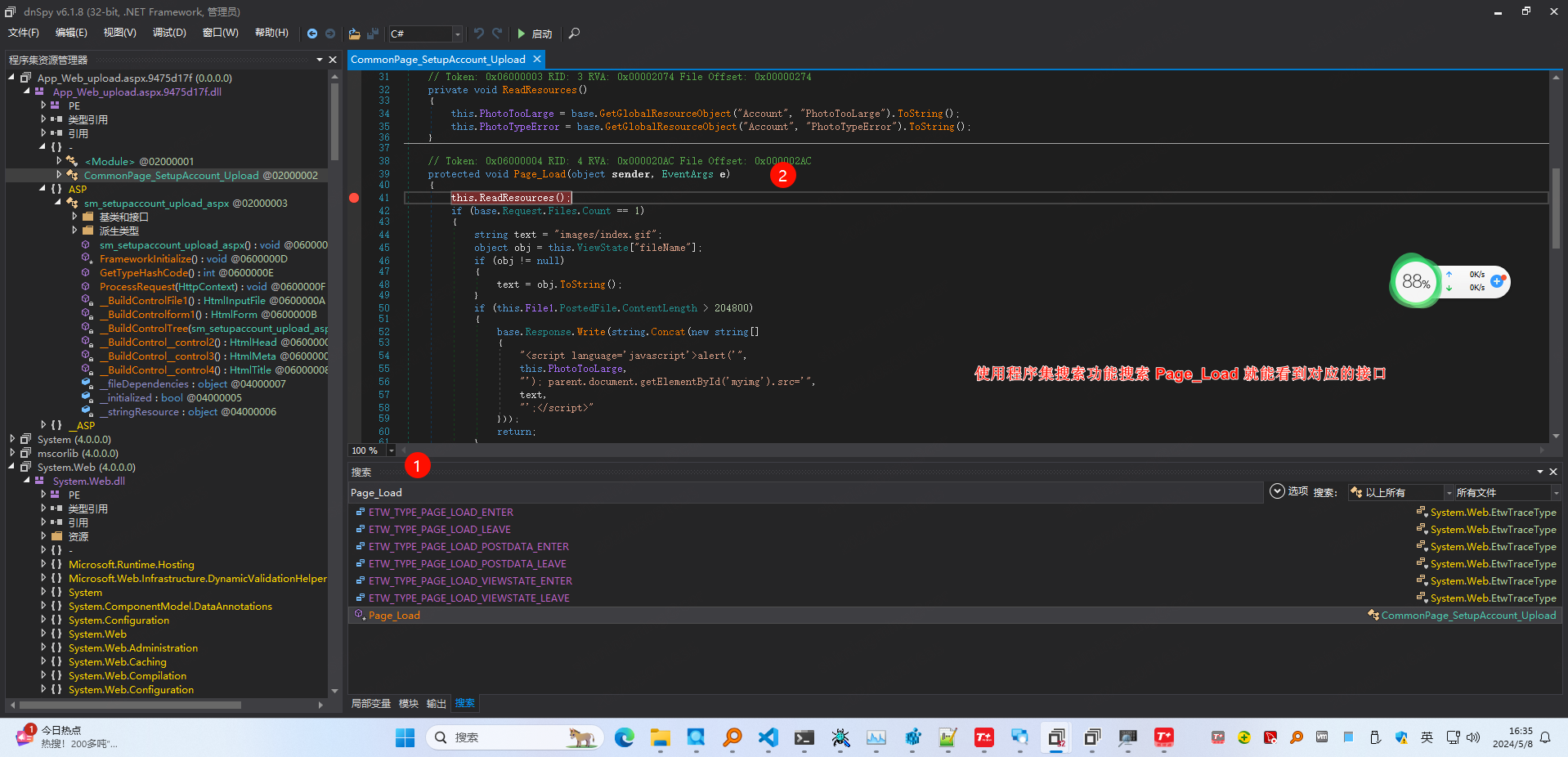 dnSpy 反编译的 Page_Load 函数内容如下所示: