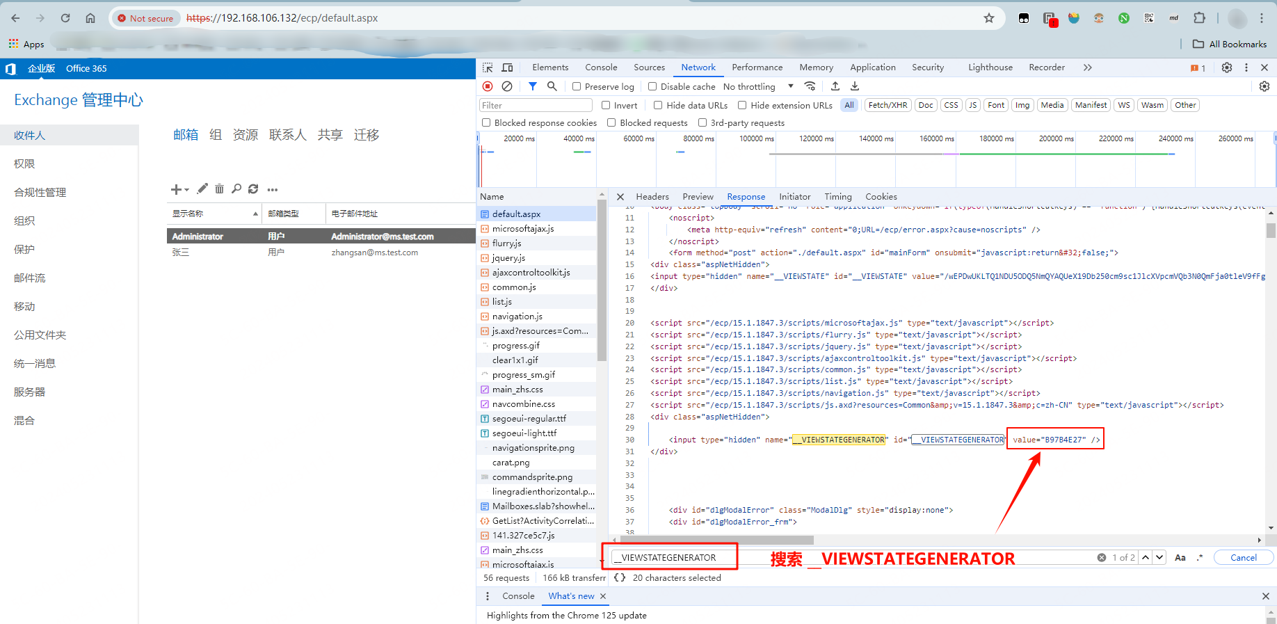 具体来说,与正常软件安装每次都会产生随机密钥不同,所有Exchange Server在安装后的 web.config 文件中都拥有相同的 validationKey 和 decryptionKey。这些密钥用于保证 ViewState 的安全性。而 ViewState 是ASP.NET Web应用以序列化格式存储在客户机上的服务端数据。客户端通过__VIEWSTATE请求参数将这些数据返回给服务器。攻击者可以在 ExchangeControl Panel web 应用上执行任意.net代码。