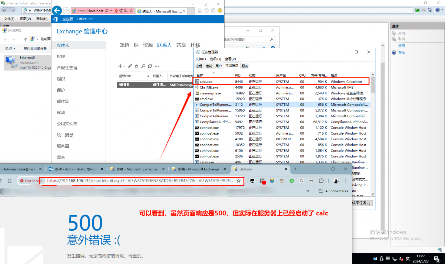 当攻击者通过各种手段获得一个可以访问Exchange Control Panel (ECP)组件的用户账号密码时。攻击者可以在被攻击的exchange上执行任意代码,直接获取服务器权限。