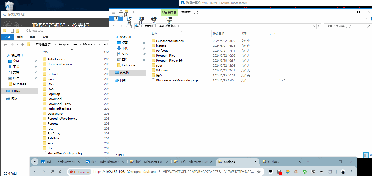 登录 Exchange 邮箱页面,https://localhost/ecp(管理员页面) 或者 https://localhost/owa(个人页面)