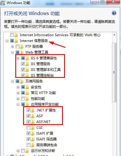 - 控制面板–>程序–>打开或关闭window功能–>勾选IIS相关选项–>确定
