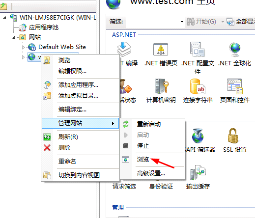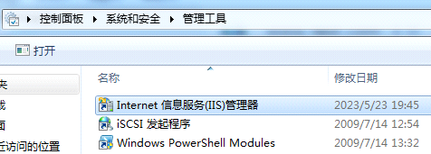 - 重启系统后,控制面板–>系统和安全–>管理工具,可以看到IIS管理器