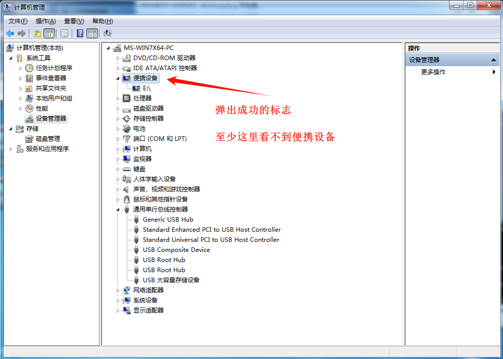 结果:无效。因为设备并没有实际弹出,所有刷新后设备列表还是会有便携设备存在。