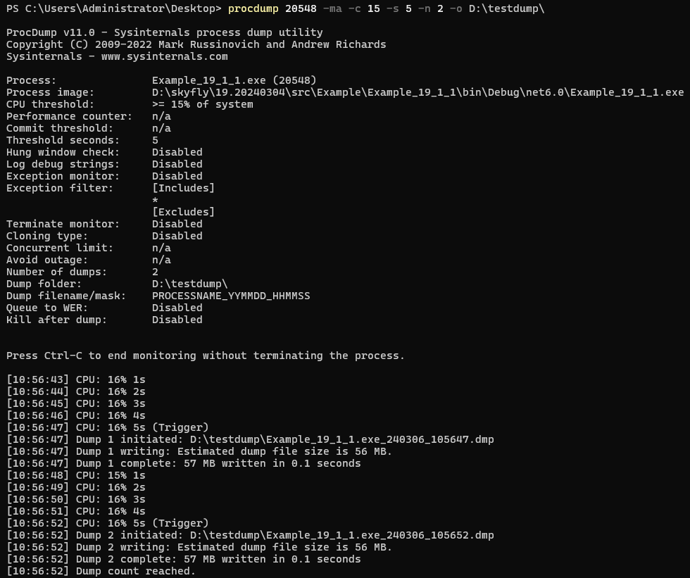 | procdump 20548 -ma -c 70 -s 5 -n 2 -o D:\testdump
