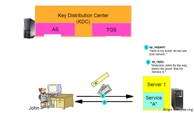Client 收到 KRB_TGS_REP,使用 Logon Session Key(SKDC-Client)解密第一部分后获得 Session Key(SServer-Client)。有了 Session Key 和 Ticket,Client 就可以之间和 Server 进行交互,而无须在通过 KDC 作中间人了。