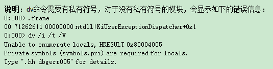 | dv /t | 查看局部变量, 并显示每个局部变量的数据类型 | ||
