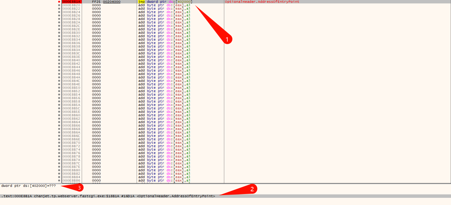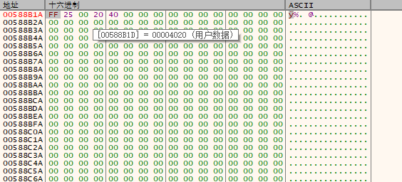 显示入口点位于 00588B1A 处(目前来看,这行代码是不能中断的):