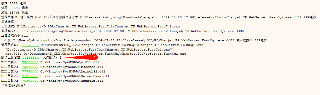 用 x32dbg 调试某 .Net Exe 程序,在单步启动后,可以看到相关信息如下所示的日志数据: