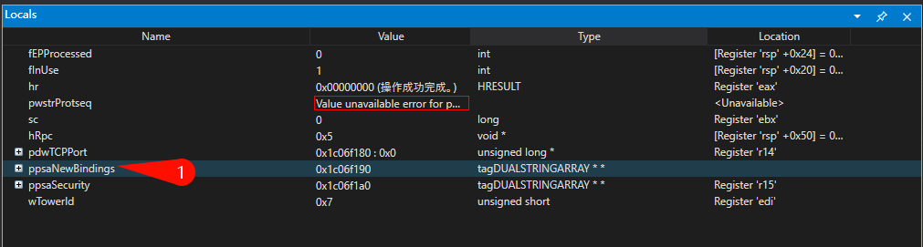 在 Hook 的 UseProtseq 函数中,主要修改了 ppdsaNewBindings 参数,写入了如下所示的两条 EndPoint 的相关信息: