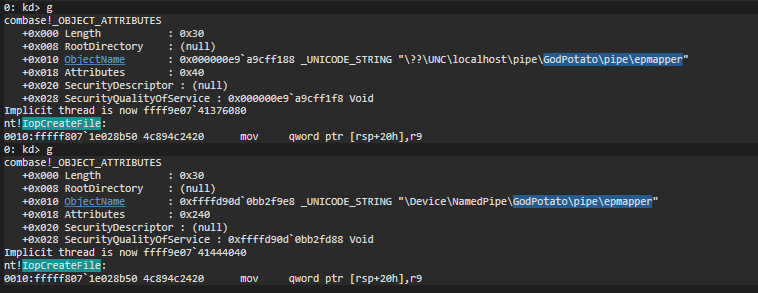 GodPotato 管道建立调试