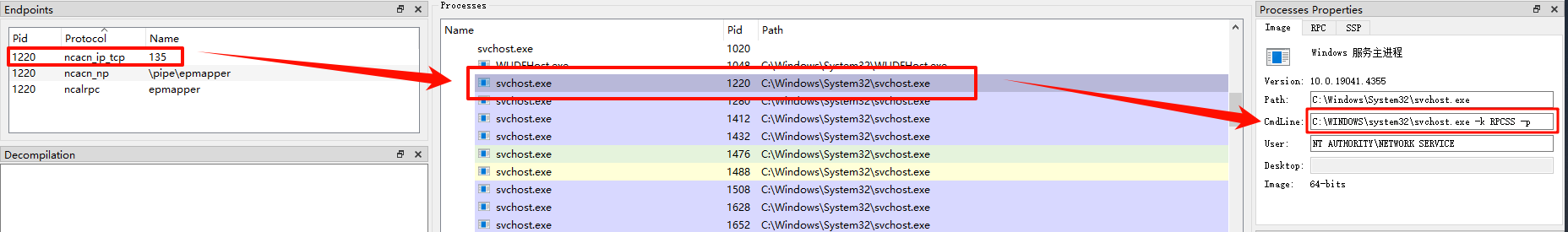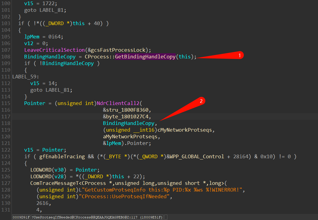 UseProtseqIfNeeded 发起的调用信息是通过 CProcess::GetBindingHandleCopy 返回的 RPC_BINDING_HANDLE,这个接口可以看到调用客户端的 PID