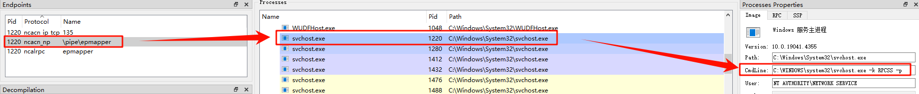 对于 “ncacn_np:localhost/pipe/GodPotato[\pipe\epmapper]” 形式的 EndPoint 来说,解析可以分为三个部分。分别是: