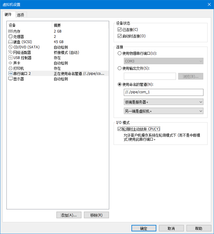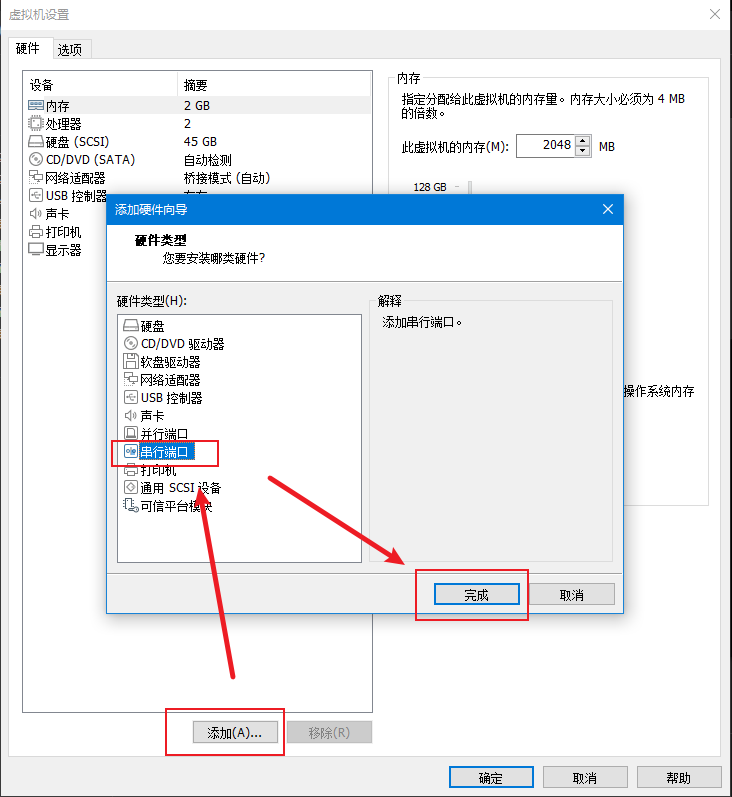 打开虚拟机配置页面,选择添加串行端口