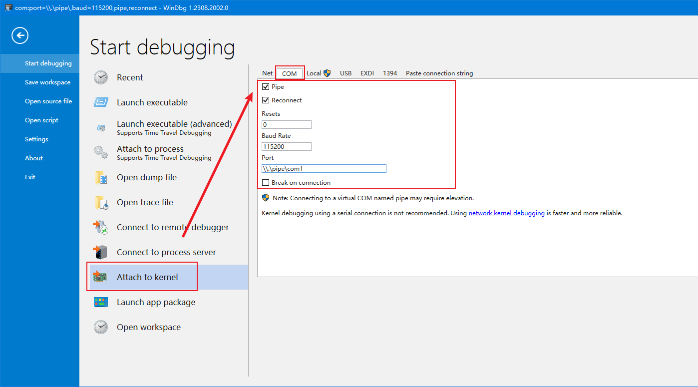 1 | bcdedit /dbgsettings SERIAL DEBUGPORT:1 BAUDRATE:115200 |