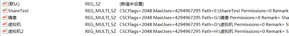 首先要获取并监控系统共享文件夹的路径,相关注册表路径为 HKEY_LOCAL_MACHINE\System\CurrentControlSet\Services\LanmanServer\Share , 他的值的格式为如图所示: