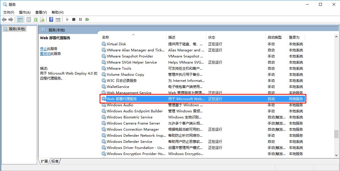 设置完成后启动 WMSVC 服务