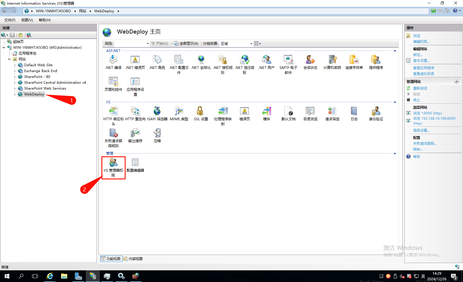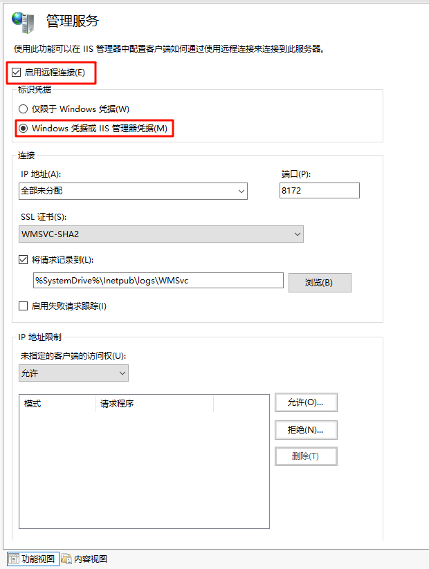 启动远程连接,设置 IIS 用户认证。