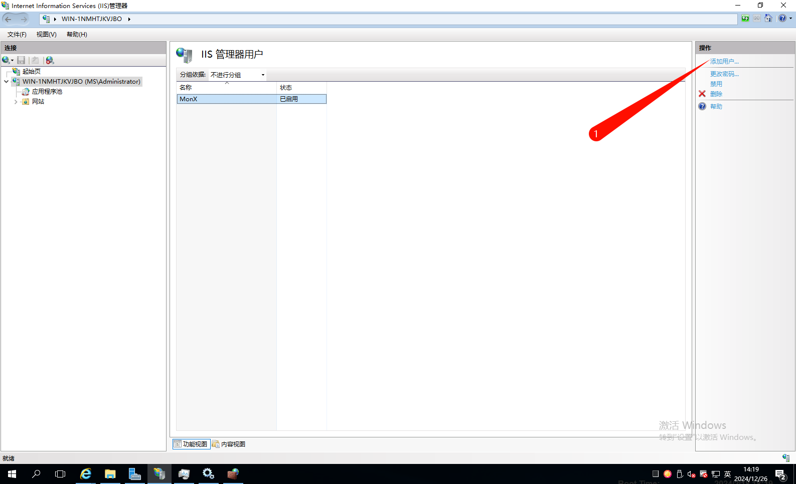 这里演示用户名为 IISAdmin。因为我这边已经创建了 MonX 了。后文使用的就以 MonX 为主。这里仅做演示。
