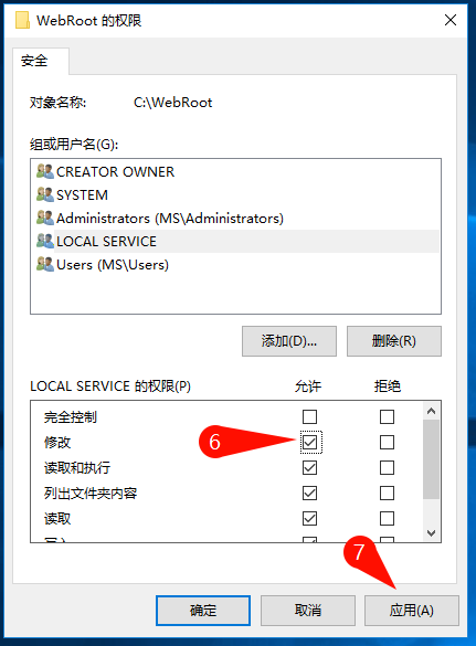 文件目录添加 Local Service 控制权限