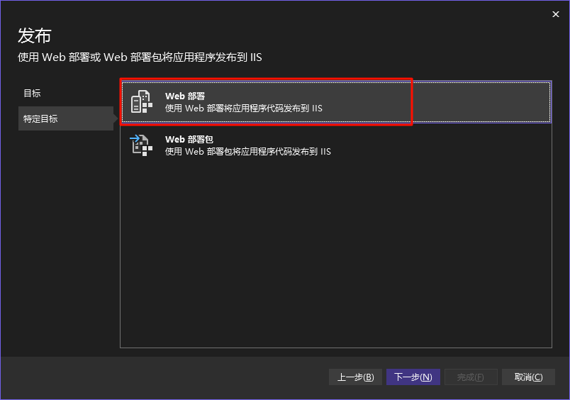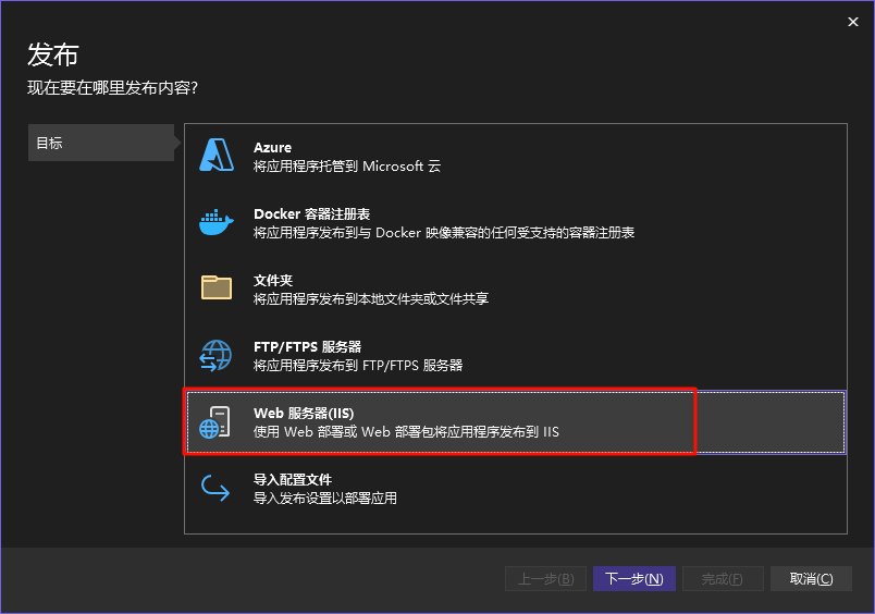 - 右击 VS 项目点击发布,选择 Web 服务器